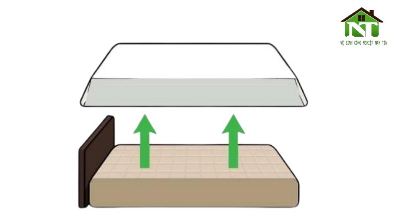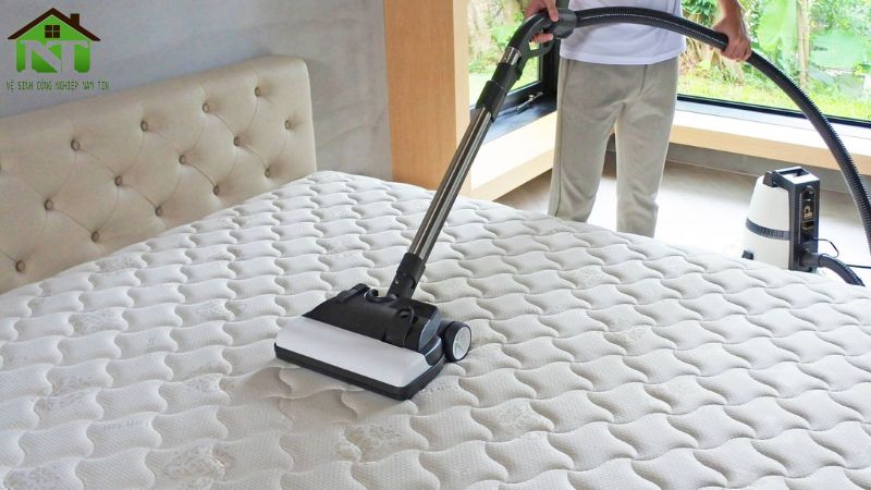 - Hút bụi toàn bộ nệm để loại bỏ những hạt bụi trên bể mặt.