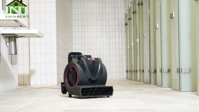 - Máy thổi khô tạo ra luồng không khí mạnh, giúp làm khô bề mặt sàn, trần nhà, và các vật dụng một cách nhanh chóng.
