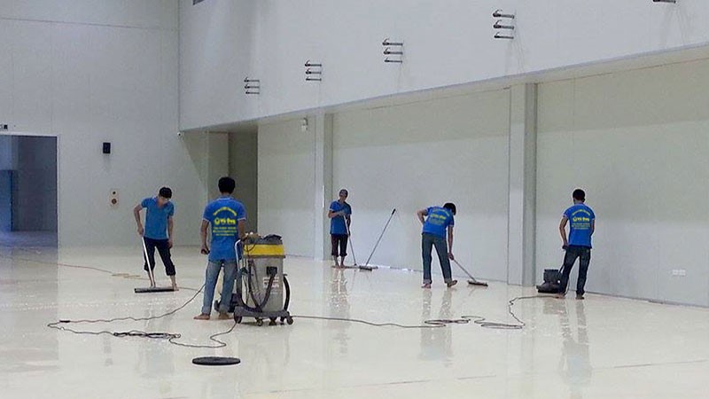 - Vệ sinh sàn nhà đánh bóng sàn(bằng máy công nghiệp).